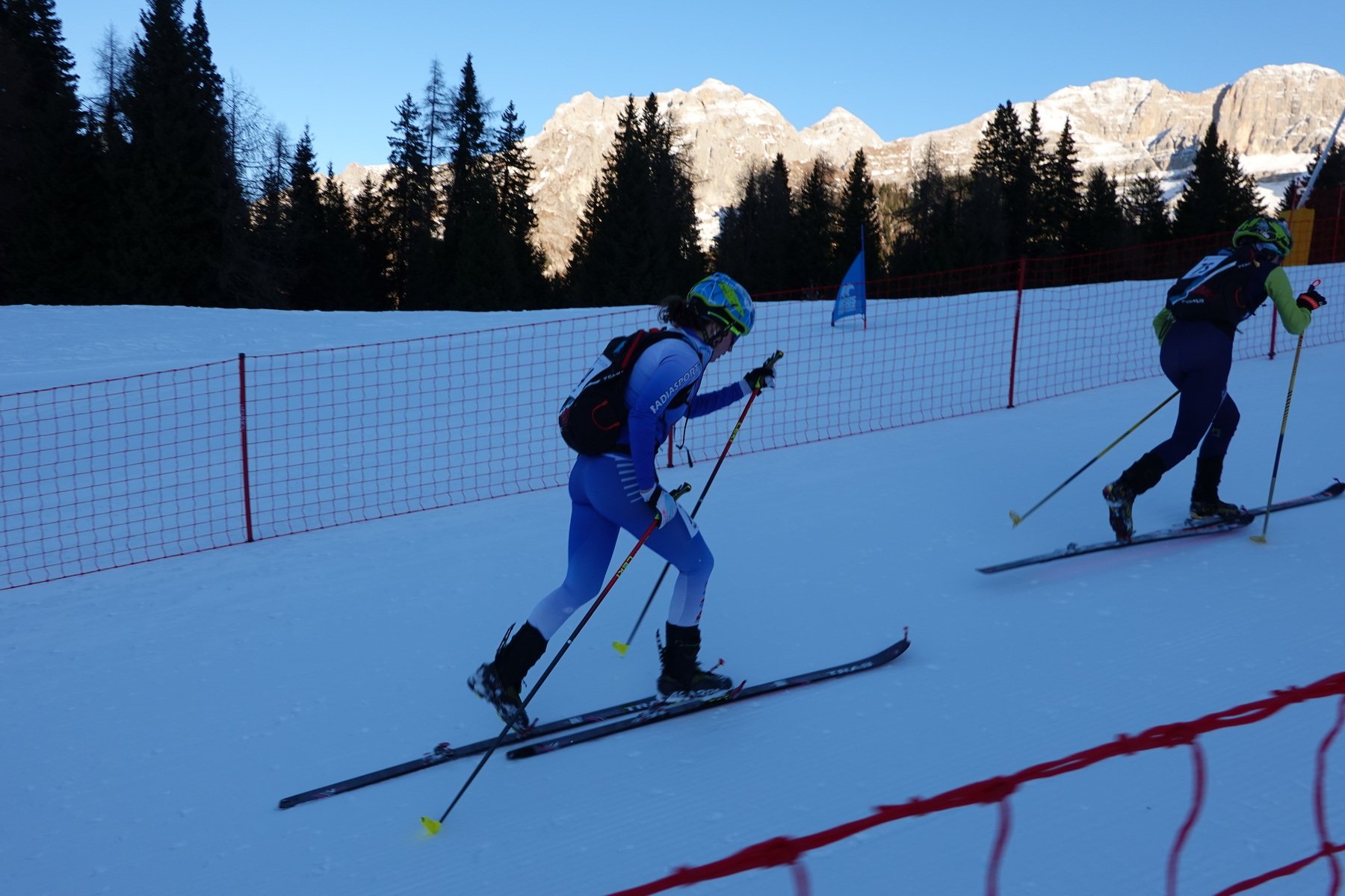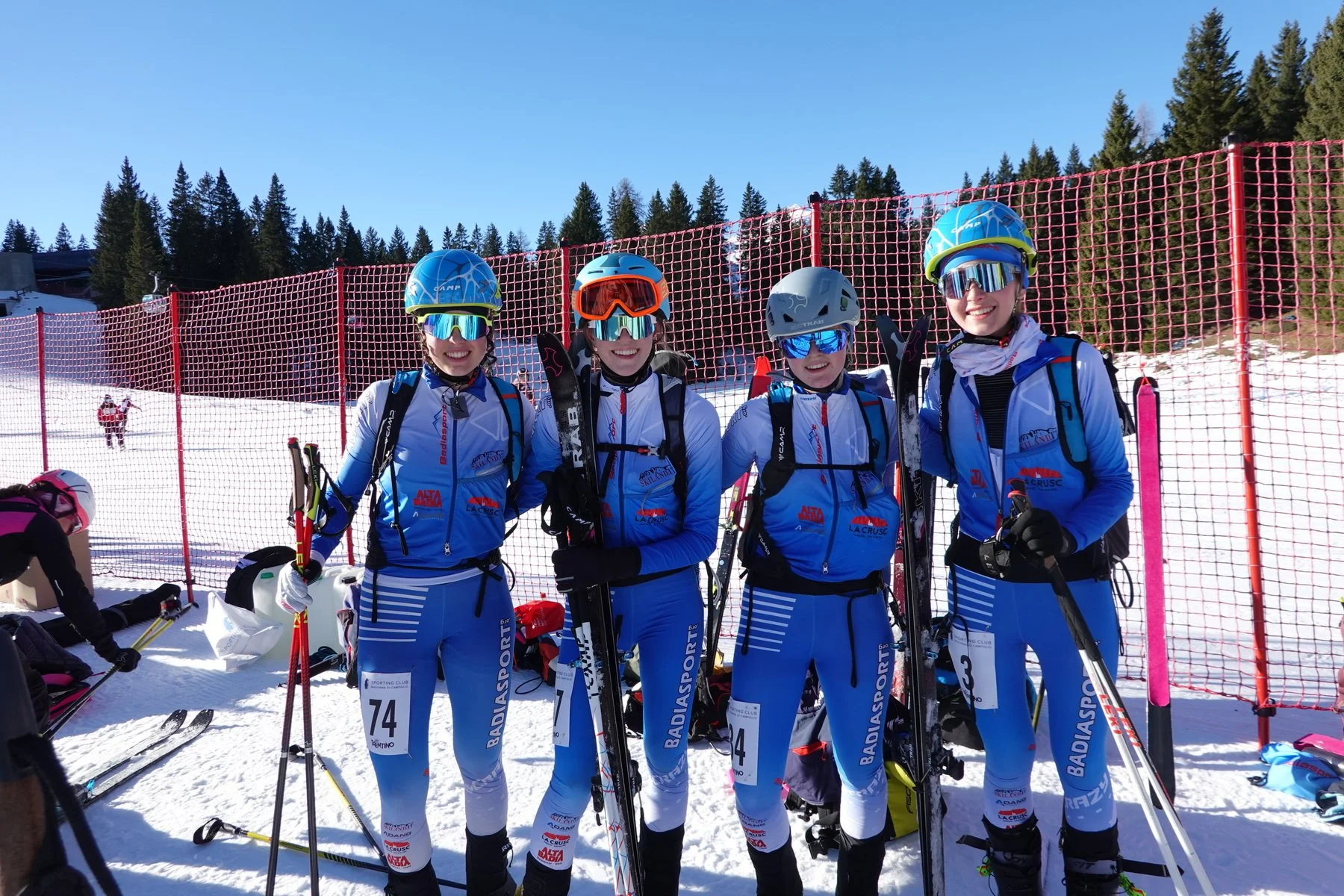 Sciöch’al é tradiziun, á ince en chësc ann indô metü man la sajun dles gares cun i schi da alpinism por i atlec y les atletes dla uniun sportiva Badiasport. Tratan döt l’isté s’á i atlec alené da salté y pornanche al é tomé la pröma nëi ái indô podü mëte man da jí cun i schi y les pels sön la nëi. La sabeda, ai 13 de dezëmber, é les cater atletes Sofia Pitscheider, Sofie Irsara, Annalisa Pitscheider y Maria Pescosta, jüdes a Madonna di Campiglio cun i acompagnadus Werner Pescosta y Daniele Irsara, che é ince alenadú y presidënt dla uniun. Chiló áres tut pert ala pröma gara sprint de Coppa Italia de chësta sajun nöia da d’invern. Por Sofia, Sofie y Maria él sté na pröma esperiënza te na gara de chësta sort. Annalisa, che á bele tut pert a deplü competiziuns ti agn passá y á ince arjunt na certa esperiënza, s’á impröma cualifiché por la finala cun le terzo miú tëmp dl de danter les atletes de süa categoria. Ala fin éra spo rovada al bun cuinto post y cuarta miú taliana. Do chësc de de devertimënt y de suzes é les atletes indô rovades zoruch a ciasa cun tröp entusiasm da jí inant cun i alenamënc che ti aspeta cina ales proscimes gares.